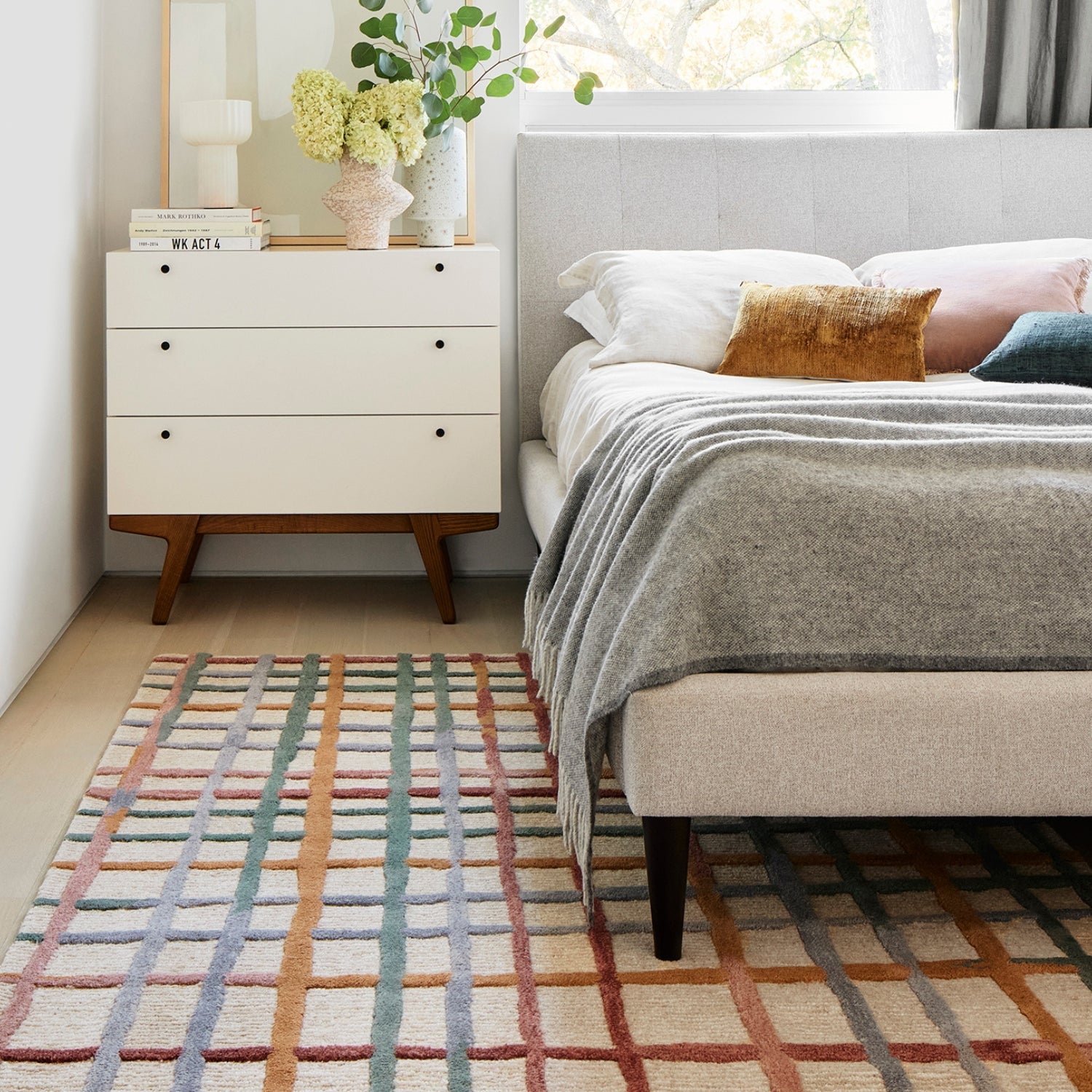 Ground your space with geometric shapes inspired by modern and abstract art.